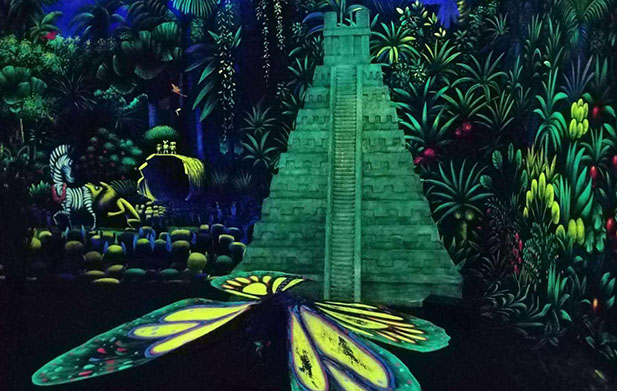地面互動投影是一種基于動態(tài)捕捉技術(shù)建立交互式顯示的新型升級投影顯示方法。它與游戲緊密結(jié)合,使用高流明投影儀將圖像投影在一般路面上。當(dāng)觀眾走過互動區(qū)域時,視覺識別系統(tǒng)將識別其動作并實現(xiàn)人與地面動態(tài)圖片之間的實時交互。